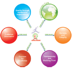Our Core Values and Keys to success are the basis for establishing a common culture amongst the members of 'elechem' family & based on these values, they achieve business success in dealing with customers, suppliers & partners. Our core value system includes :-
